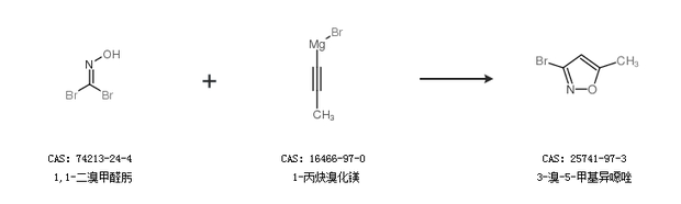 1.通过1,1-二溴甲醛肟和1-丙炔溴化镁合成3-溴-5-甲基异噁唑