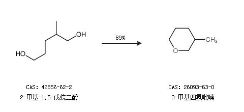 1.通过2-甲基-1,5-戊烷二醇合成3-甲基四氢吡喃,收率约89%;