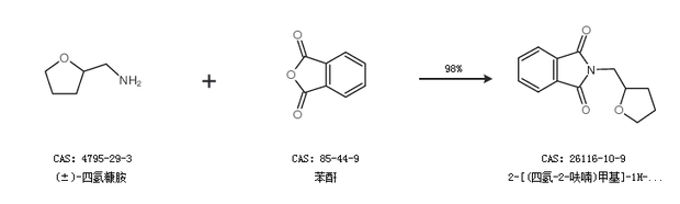1.通过(±)-四氢糠胺和苯酐合成2-[(四氢-2-呋喃)甲基]-1H-异吲哚-1,3-二酮,收率约98%;