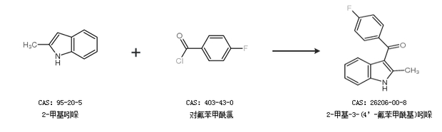 1.通过2-甲基吲哚和对氟苯甲酰氯合成2-甲基-3-(4’-氟苯甲酰基)吲哚