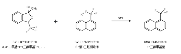 2.通过3,3-二甲基-1-(三氟甲基)-1,2-苯并碘氧杂戊环和(1-萘)三氟硼酸钾合成1-三氟甲基萘,收率约51%;