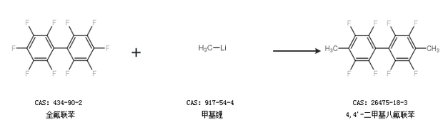 1.通过全氟联苯和甲基锂合成4,4''-二甲基八氟联苯