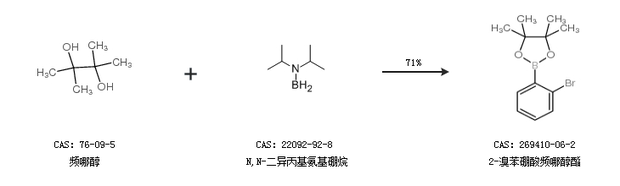 1.通过频哪醇和N,N-二异丙基氨基硼烷合成2-溴苯硼酸频哪醇酯,收率约71%;
