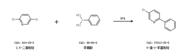 2.通过2,5-二溴吡啶和苯硼酸合成5-溴-2-苯基吡啶,收率约97%;