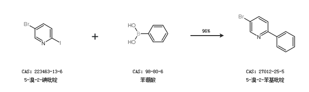 1.通过5-溴-2-碘吡啶和苯硼酸合成5-溴-2-苯基吡啶,收率约96%;