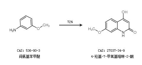 2.通过间氨基苯甲醚合成4-羟基-7-甲氧基喹啉-2-酮,收率约72%;