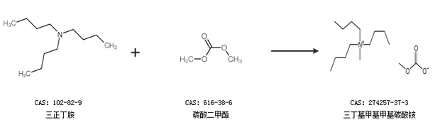 1.通过三正丁胺和碳酸二甲酯合成三丁基甲基甲基碳酸铵