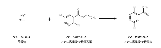 1.通过甲醇钠和3,6-二氯吡嗪-4-羧酸乙酯合成3,6-二氯吡嗪-4-羧酰胺