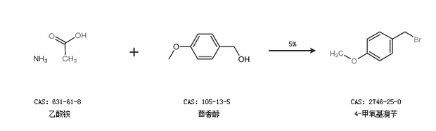 2.通过乙酸铵和茴香醇合成4-甲氧基溴苄,收率约5%;