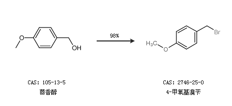 1.通过茴香醇合成4-甲氧基溴苄,收率约98%;