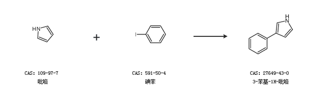 1.通过吡咯和碘苯合成3-苯基-1H-吡咯