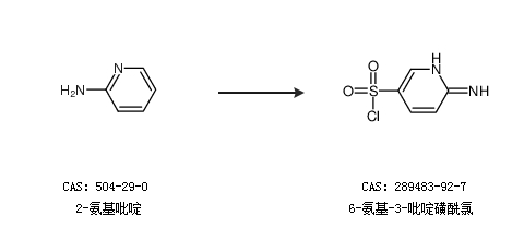 1.通过2-氨基吡啶合成6-氨基-3-吡啶磺酰氯,收率约35%;