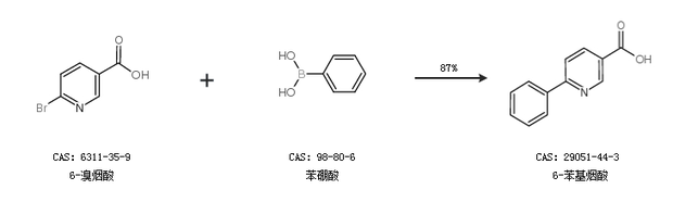 1.通过6-溴烟酸和苯硼酸合成6-苯基烟酸,收率约87%;