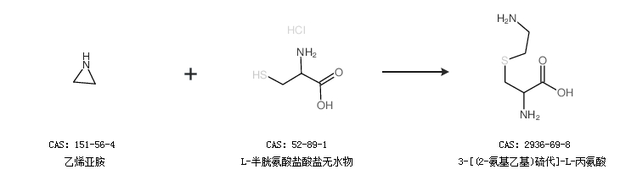 1.通过乙烯亚胺和L-半胱氨酸盐酸盐无水物合成3-[(2-氨基乙基)硫代]-L-丙氨酸