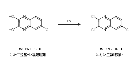 1.通过2,3-二羟基-6-氯喹喔啉合成2,3,6-三氯喹喔啉,收率约86%;