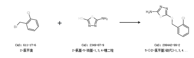 1.通过2-氯苄溴和2-氨基-5-巯基-1,3,4-噻二唑合成5-[(2-氯苄基)硫代]-1,3,4-噻二唑-2-胺