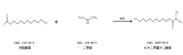 1.通过月桂酰氯和二甲胺合成N,N-二甲基十二酰胺,收率约93%;