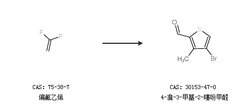 1.通过偏氟乙烯合成4-溴-3-甲基-2-噻吩甲醛