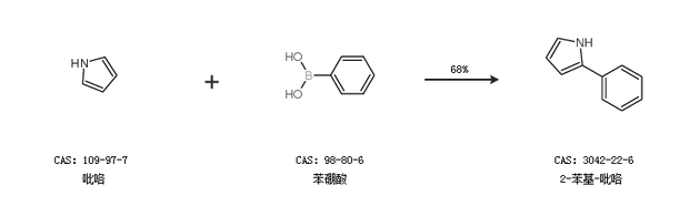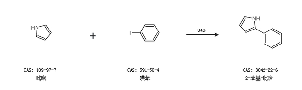1.通过吡咯和碘苯合成2-苯基-吡咯,收率约84%;