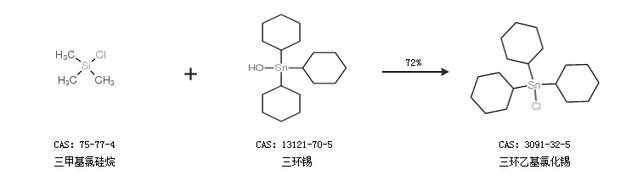 1.通过三甲基氯硅烷和三环锡合成三环乙基氯化锡,收率约72%;