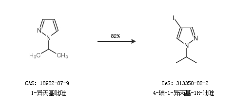 2.通过1-异丙基吡唑合成4-碘-1-异丙基-1H-吡唑,收率约82%;