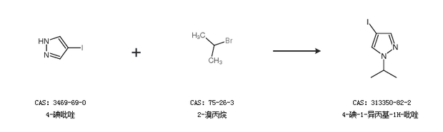1.通过4-碘吡唑和2-溴丙烷合成4-碘-1-异丙基-1H-吡唑