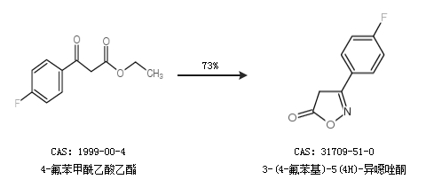 2.通过4-氟苯甲酰乙酸乙酯合成3-(4-氟苯基)-5(4H)-异噁唑酮,收率约73%;