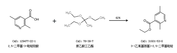 1.通过2,5-二甲基-3-吡啶羧酸和原乙酸三乙酯合成3-(乙氧基羰基)-2,5-二甲基吡啶,收率约62%;