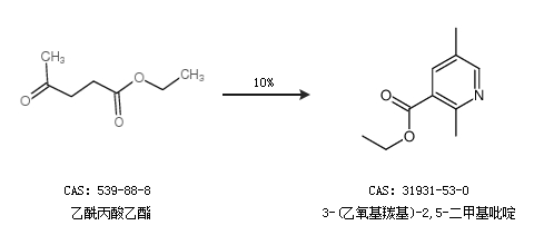 2.通过乙酰丙酸乙酯合成3-(乙氧基羰基)-2,5-二甲基吡啶,收率约10%;