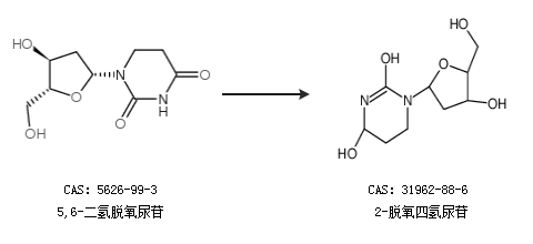 2.通过5,6-二氢脱氧尿苷合成2-脱氧四氢尿苷