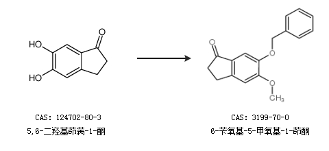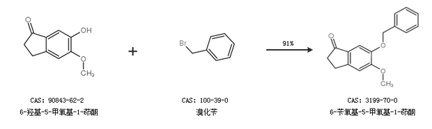 1.通过6-羟基-5-甲氧基-1-茚酮和溴化苄合成6-苄氧基-5-甲氧基-1-茚酮,收率约91%;