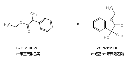 1.通过2-苯基丙酸乙酯合成2-羟基-2-苯丙酸乙酯