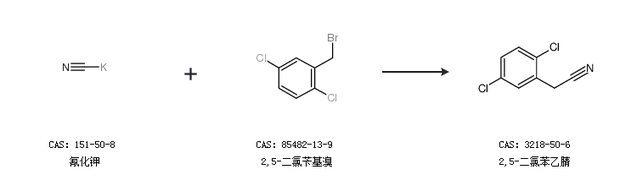1.通过氰化钾和2,5-二氯苄基溴合成2,5-二氯苯乙腈