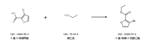 2.通过3-溴-2-呋喃甲酸和碘乙烷合成3-溴-呋喃-2-羧酸乙酯