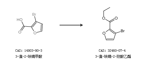 1.通过3-溴-2-呋喃甲酸合成3-溴-呋喃-2-羧酸乙酯