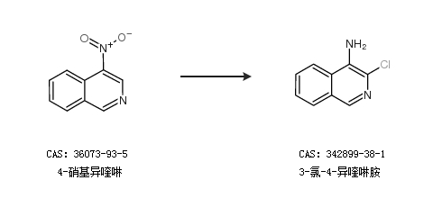 2.通过4-硝基异喹啉合成3-氯-4-异喹啉胺