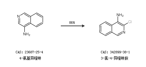 1.通过4-氨基异喹啉合成3-氯-4-异喹啉胺,收率约86%;
