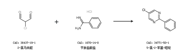 1.通过2-氯马来醛和苄脒盐酸盐合成5-氯-2-苯基-嘧啶