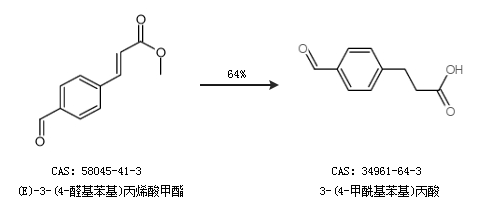 1.通过(E)-3-(4-醛基苯基)丙烯酸甲酯合成3-(4-甲酰基苯基)丙酸,收率约64%;