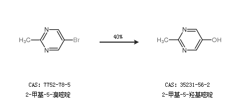 1.通过2-甲基-5-溴嘧啶合成2-甲基-5-羟基嘧啶,收率约40%;