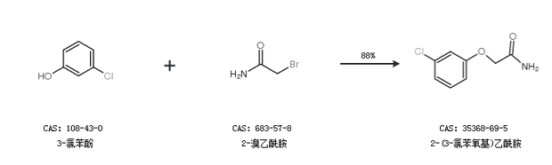 1.通过3-氯苯酚和2-溴乙酰胺合成2-(3-氯苯氧基)乙酰胺,收率约88%;