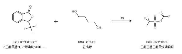 2.通过1-三氟甲基-1,2-苯碘酰-3(H)-酮和正戊醇合成三氟乙基三氟甲烷磺酸酯,收率约7%;
