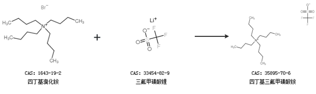 2.通过四丁基溴化铵和三氟甲磺酸锂合成四丁基三氟甲磺酸铵
