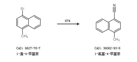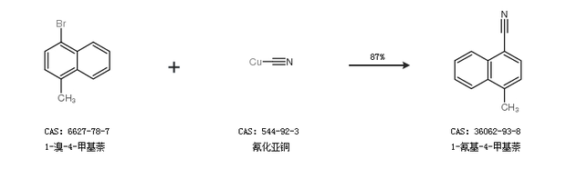 2.通过1-溴-4-甲基萘合成1-氰基-4-甲基萘,收率约87%;