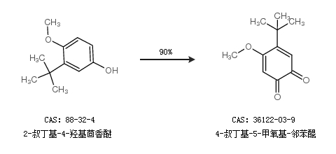 1.通过2-叔丁基-4-羟基茴香醚合成4-叔丁基-5-甲氧基-邻苯醌,收率约90%;