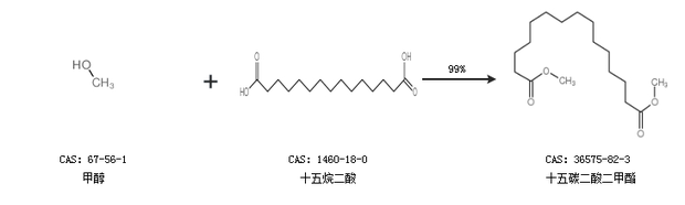 1.通过甲醇和十五烷二酸合成十五碳二酸二甲酯,收率约99%;