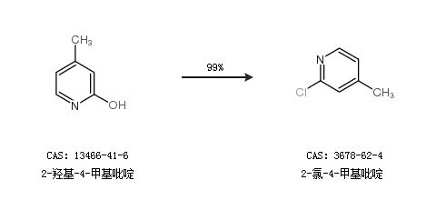 1.通过2-羟基-4-甲基吡啶合成2-氯-4-甲基吡啶,收率约99%;