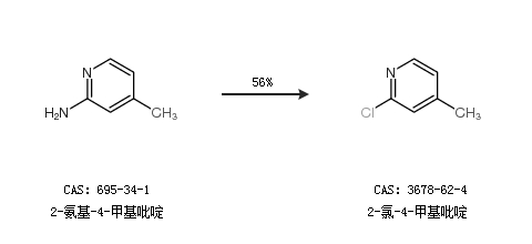 2.通过2-氨基-4-甲基吡啶合成2-氯-4-甲基吡啶,收率约56%;
