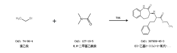 1.通过溴乙烷和N,N-二甲基乙酰胺合成(S)-乙基2-(((s)-2-氧代-2,3,4,5-四氢-1H-苯并[b]氮杂革-3-基)氨基)-4-苯基丁酸酯,收率约79%;