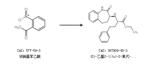 2.通过邻硝基苯乙酮合成(S)-乙基2-(((s)-2-氧代-2,3,4,5-四氢-1H-苯并[b]氮杂革-3-基)氨基)-4-苯基丁酸酯
